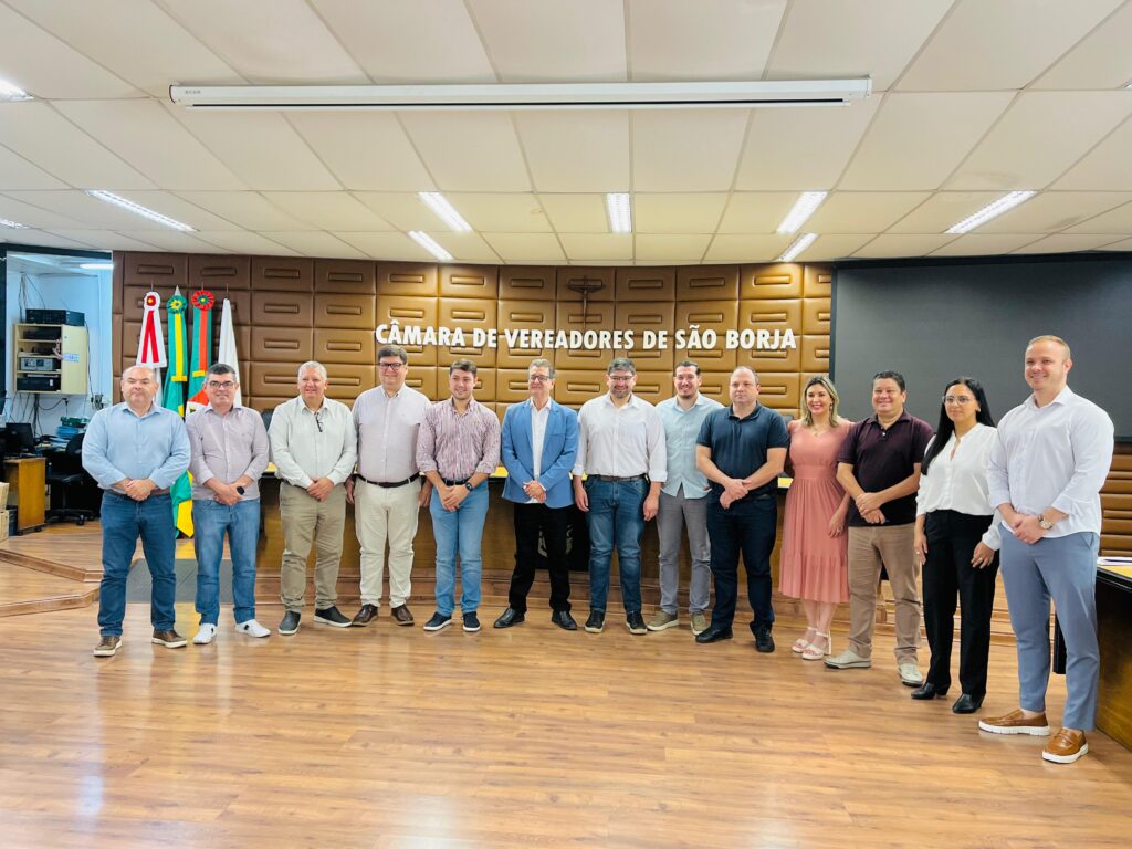 SANTO TOME. En la mañana de este jueves, el presidente del HCD Carlos Adolfo Farizano, el vicepresidente 1ro Santiago Saucedo, y la secretaria legislativa Giuliana Dal Vecchio; visitaron la Cámara de Vereadores de Sao Borja.