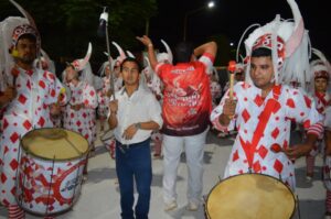 Con una marcada expectativa en quienes gustan del carnaval, este sábado a las 23,15 hs el “rey momo” hizo su entrada en la pasarela del corsódromo de esta ciudad con la participación de las tres comparsas que animan año a año esta convocante fiesta. Abrió el ingreso e hizo la apertura del espectáculo la última campeona del carnaval de esta ciudad, Comparsa Marabú que busca retener el título y así obtener el pentacampeonato. En el escenario se notó y muchos los cambios introducidos tanto en el cuerpo de baile como en la batería que este año tiene como nuevo director al libreño Franco Atto.