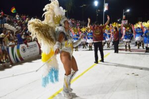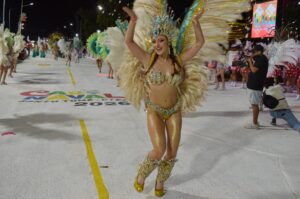 Y la primera noche de corso, bajó el telón de cierre la agrupación carnestolenda que representa a los barrios del sur, es decir Comparsa Ipanema, la “tricolor”; la que busca mantenerse o en todo caso ir creciendo de a poco o como las circunstancias económicas lo permitan. La entrada de Ipanema al desfile se dio en un marco del aliento permanente de sus seguidores que con banderas con los colores tradicionales, le daban la bienvenida con el sonar de la batería que este año lo dirige “Camello” Silva y que tiene la responsabilidad en cierto modo de intentar retener el título como mejor batería que obtuvo en el año 2025.