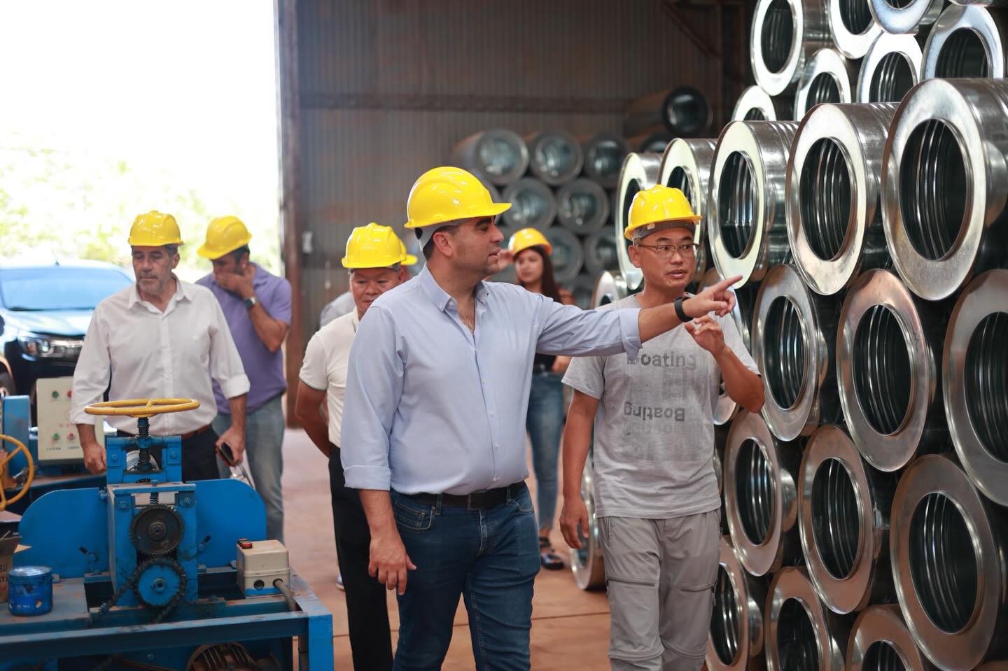 El empresario Ling Gaoming visitó las obras de la planta de Resinas Rubbers SAS. El proyecto, que ya emplea a 50 personas, busca industrializar la resina local y exportar productos con valor agregado. El intendente Augusto Suaid proyecta una misión comercial a China.