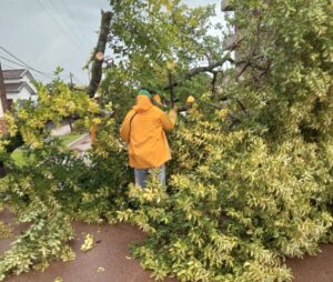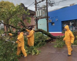 Señaló que el casco céntrico, y la zona de calle Escalada, calle Centeno, hacia el lado del río Uruguay fue el sector más afectado. “No hay reportes de personas que hayan sufrido algún tipo de daño físico, no hay lesionados a causa de la tormenta. Sí, una vivienda que fue afectada por la caída de un árbol, y fue asistida por personal del municipio. Se trabajó en conjunto Defensa Civil, Medio Ambiente y Obras Públicas. Ya cerca de las 14.30 hs la gran mayoría de árboles que cayeron a causa de la tormenta ya habían sido cortados y retirados de la vía pública. Sí quedan postes eléctricos inclinados, y desde temprano la DPEC (Dirección Provincial de Energía de Corrientes) está trabajando”, expresó Verón.