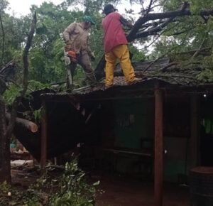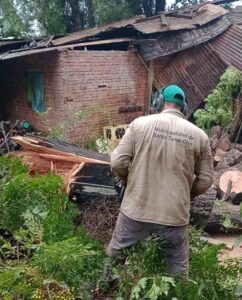 El trabajo del personal municipal arrancó, y con “motosierra” fueron despejando los caminos y los techos de las casas, en primer lugar.